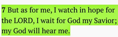 ...like the verse that says, "But as for me, I watch in hope for The Lord, I wait for God, my Savior; my God will hear me." (Micah 7:7)